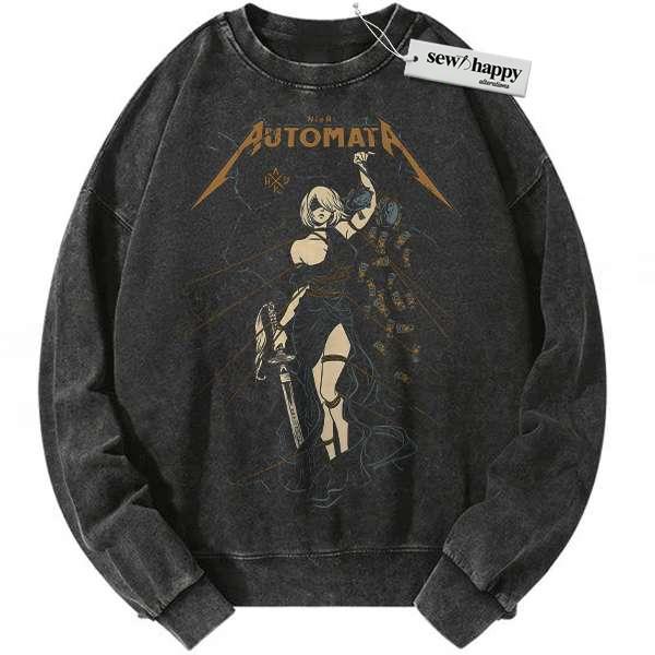 Wash Sweatshirt 2B NieR:Automata Sweatshirt, Game Sweatshirt, Vintage Sweater