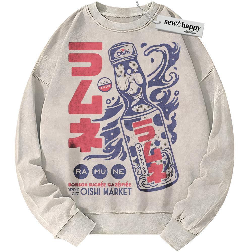 Wash Sweatshirt Ramune Soda Sweatshirt, Japanese Streetwear Sweatshirt, Vintage Sweater