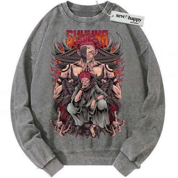Wash Sweatshirt Ryomen Sukuna Sweatshirt, Jujutsu Kaisen Sweatshirt, Anime Sweatshirt, Vintage Sweater