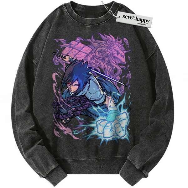 Wash Sweatshirt Sasuke Uchiha Sweatshirt, Naruto Sweatshirt, Anime Sweatshirt, Vintage Sweater