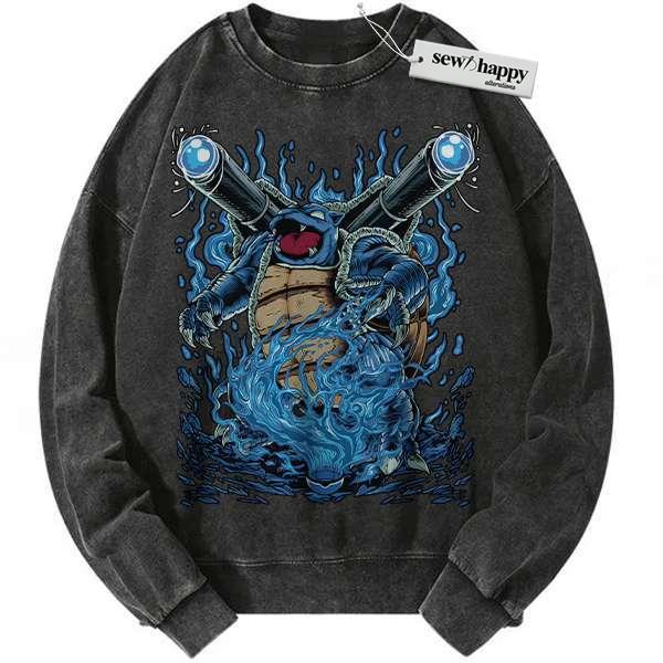 Wash Sweatshirt Blastoise Sweatshirt, Pokemon Sweatshirt, PKM Sweatshirt, Anime Sweatshirt, Vintage Sweatshirt