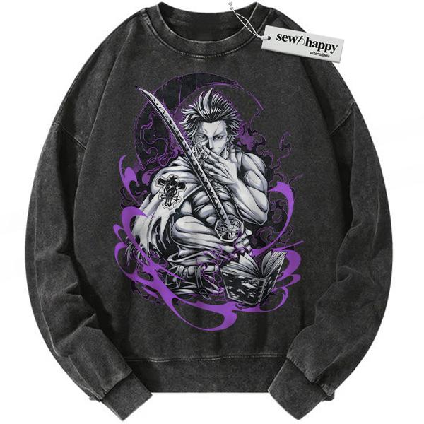 Wash Sweatshirt Yami Sukehiro Sweatshirt, Black Clover Sweatshirt, Anime Sweatshirt, Vintage Sweatshirt