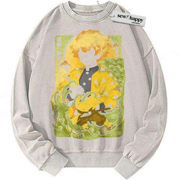 Wash Sweatshirt Zenitsu Agatsuma Sweatshirt, Demon Slayer Sweatshirt, Anime Sweatshirt, Vintage Sweater