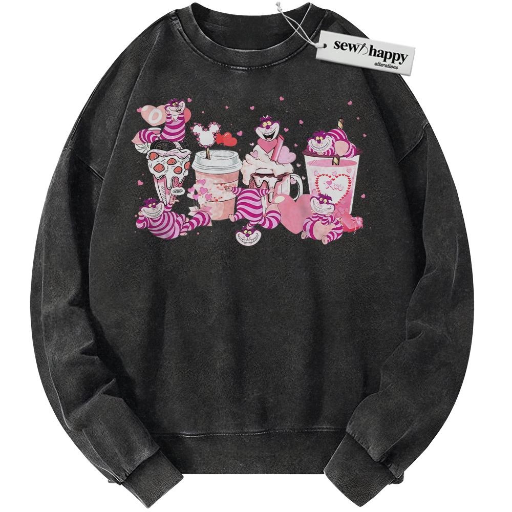 Wash Sweatshirt Cheshire Cat Sweatshirt, Alice’s Adventures in Wonderland Sweatshirt, Valentine’s Day Sweatshirt, Animated Sweatshirt, Vintage Sweater