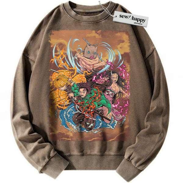 Wash Sweatshirt Demon Slayer Sweatshirt, Anime Sweatshirt, Vintage Sweater