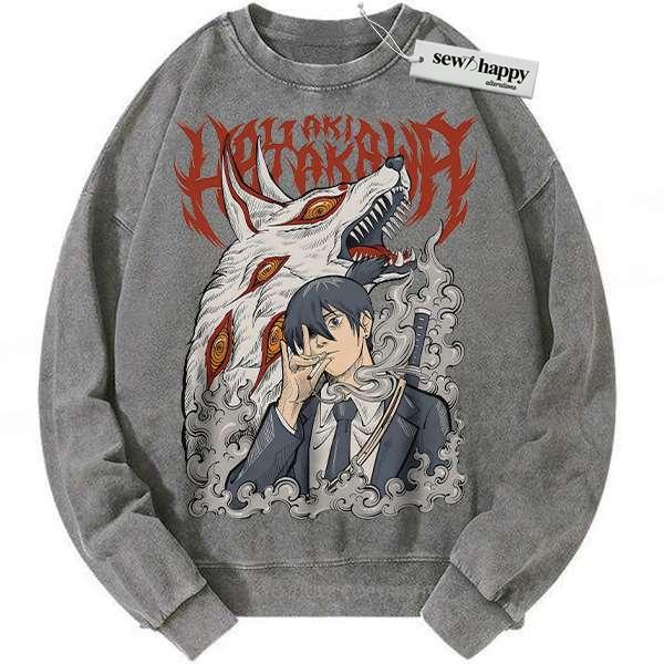 Wash Sweatshirt Aki Hayakawa Sweatshirt, Chainsaw Man Sweatshirt, Anime Sweatshirt, Vintage Sweater