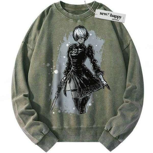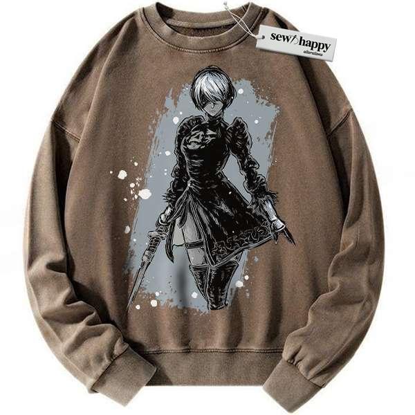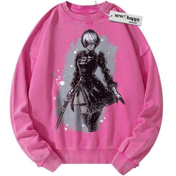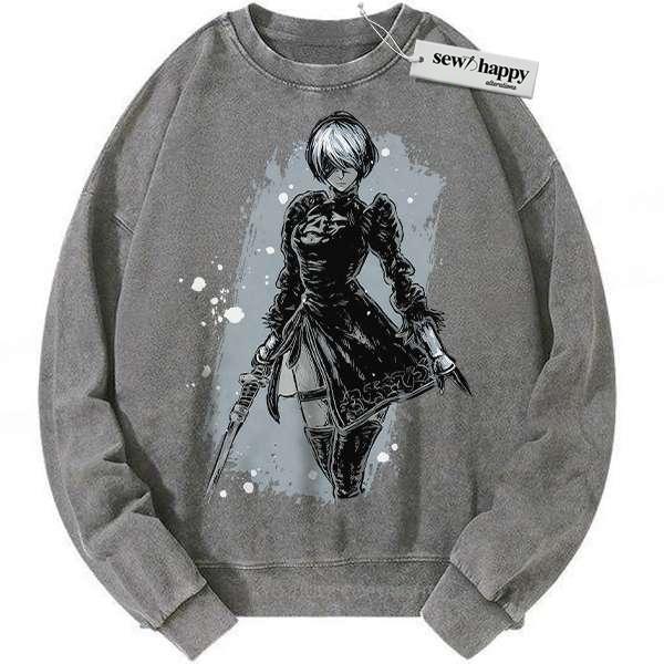 Wash Sweatshirt 2B NieR:Automata Sweatshirt, Game Sweatshirt, Vintage Sweater