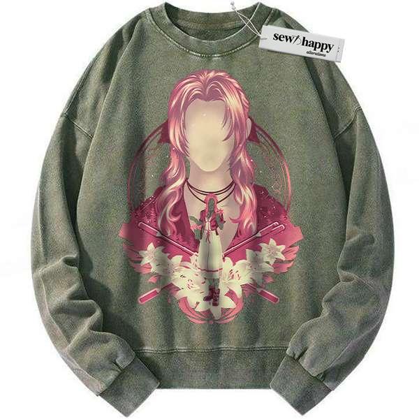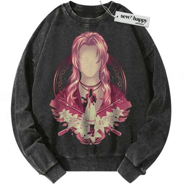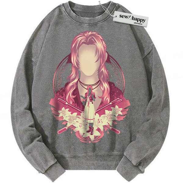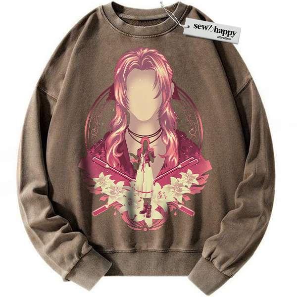 Wash Sweatshirt Aerith Gainsborough Sweatshirt, Final Fantasy Sweatshirt, Game Sweatshirt, Vintage Sweatshirt
