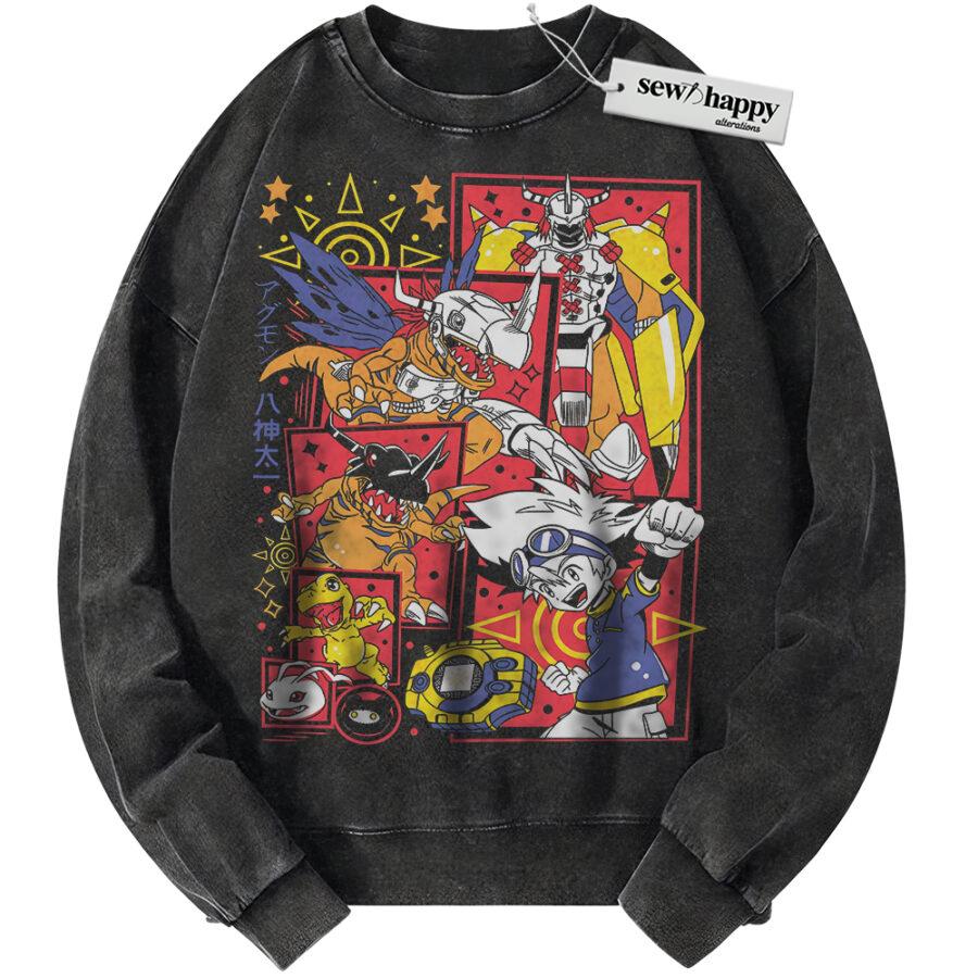 Wash Sweatshirt Agumon Sweatshirt, Greymon Sweatshirt, MetalGreymon Sweatshirt, Digimon Sweatshirt, Anime Sweatshirt, Vintage Sweater