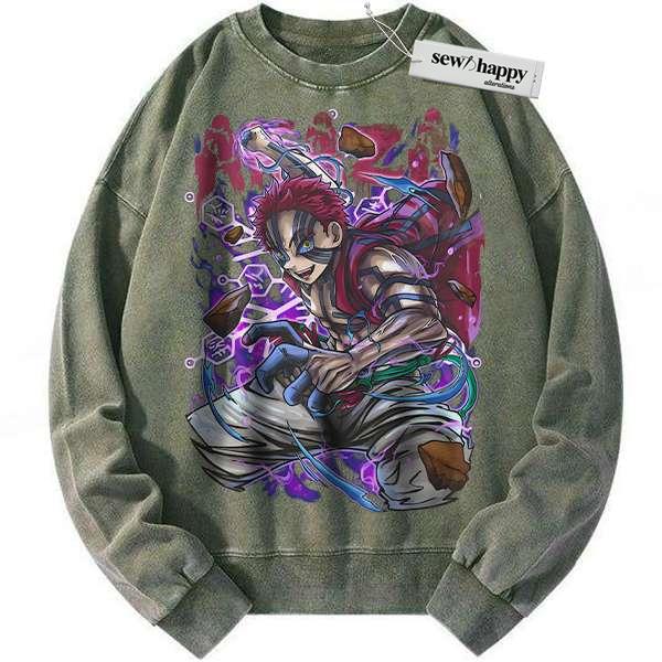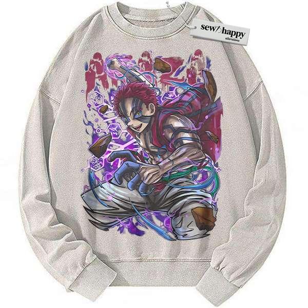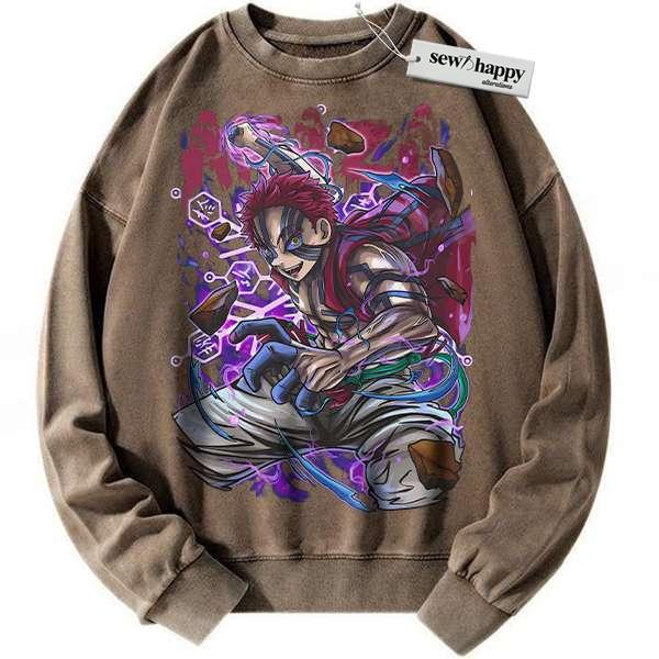 Wash Sweatshirt Akaza Sweatshirt, Demon Slayer Sweatshirt, Anime Sweatshirt, Vintage Sweater