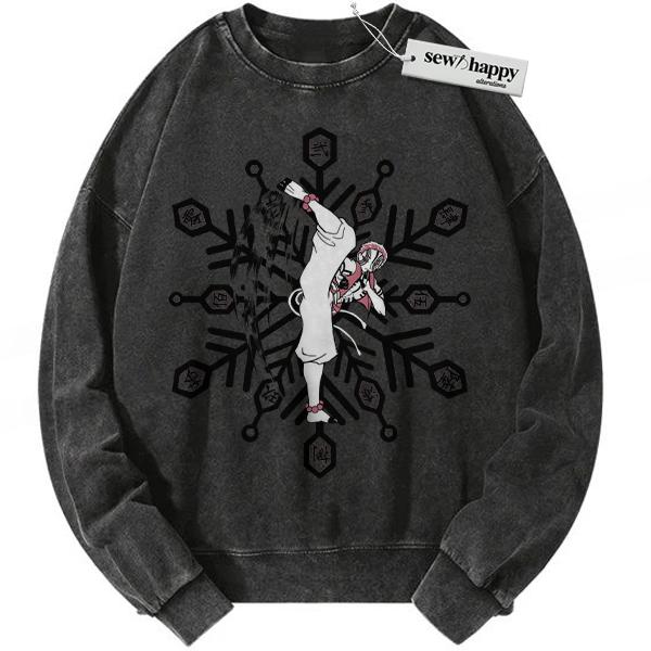 Wash Sweatshirt Akaza Sweatshirt, Demon Slayer Sweatshirt, Anime Sweatshirt, Vintage Sweatshirt