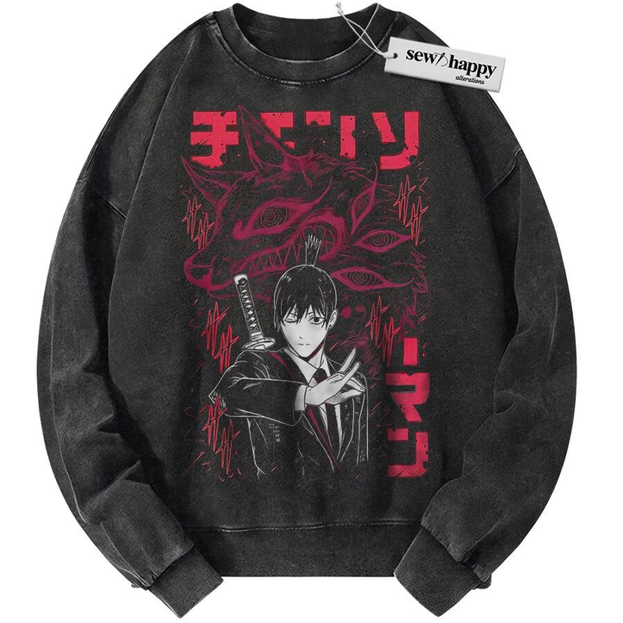 Wash Sweatshirt Aki Hayakawa Sweatshirt, Chainsaw Man Sweatshirt, Anime Sweatshirt, Vintage Sweater