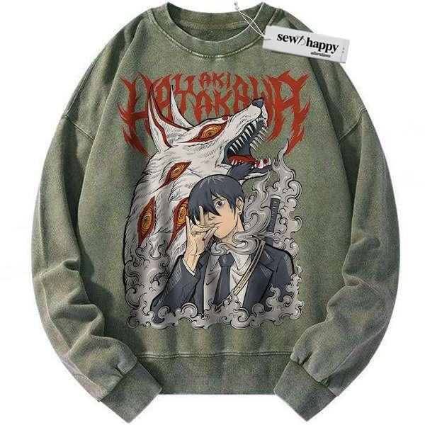 Wash Sweatshirt Aki Hayakawa Sweatshirt, Chainsaw Man Sweatshirt, Anime Sweatshirt, Vintage Sweater