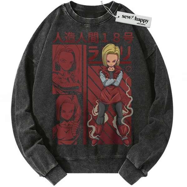 Wash Sweatshirt Android 18 Sweatshirt, Dragon Ball Sweatshirt, Anime Sweatshirt, Vintage Sweatshirt