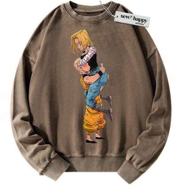 Wash Sweatshirt Android 18 Sweatshirt, Krillin Sweatshirt, Dragon Ball Z Sweatshirt, DBZ Sweatshirt, Anime Sweatshirt, Vintage Sweater