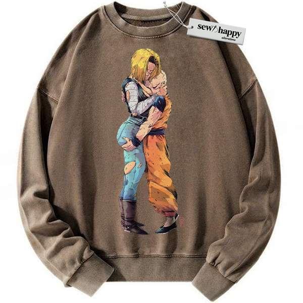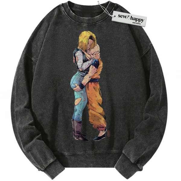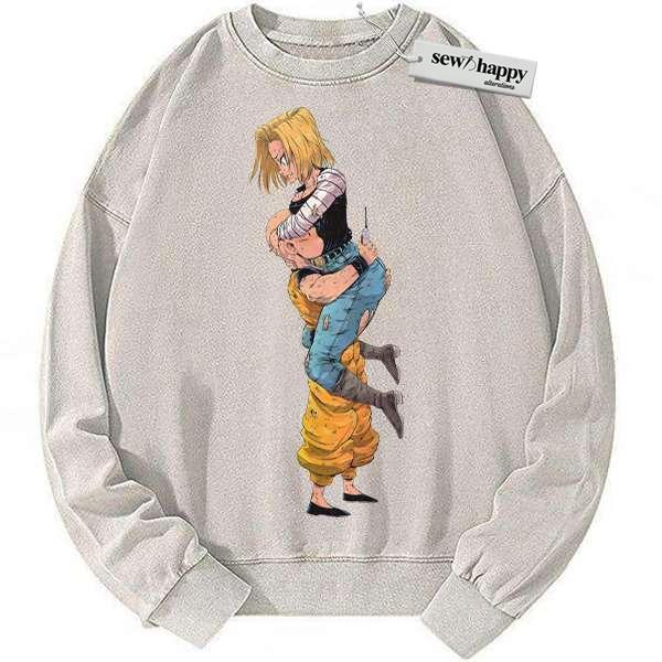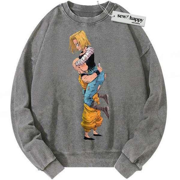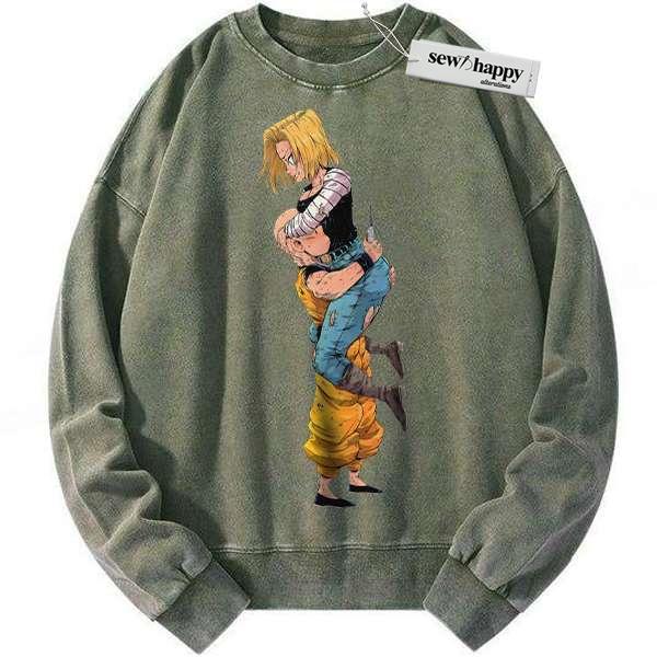 Wash Sweatshirt Android 18 Sweatshirt, Krillin Sweatshirt, Dragon Ball Z Sweatshirt, DBZ Sweatshirt, Anime Sweatshirt, Vintage Sweater