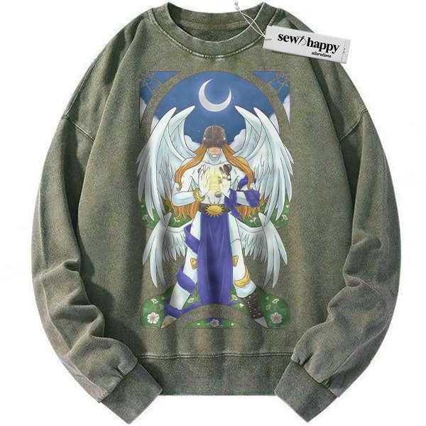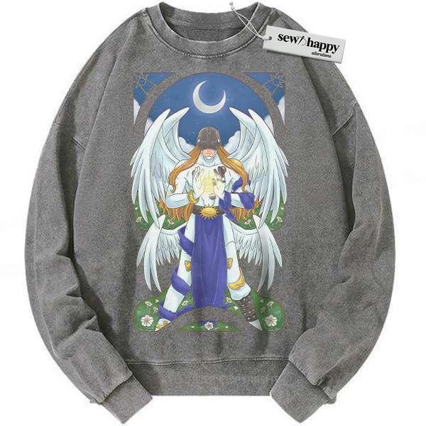Wash Sweatshirt Angemon Sweatshirt, Digimon Adventure Sweatshirt, Anime Sweatshirt, Vintage Sweatshirt