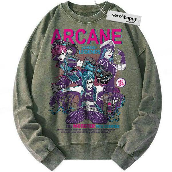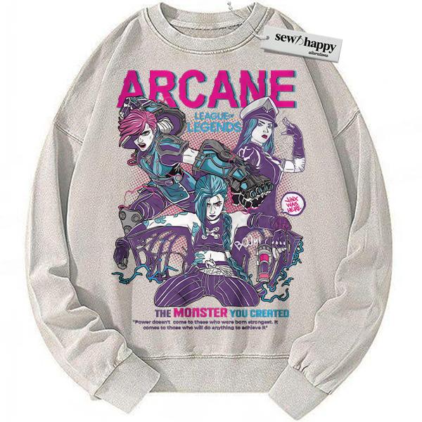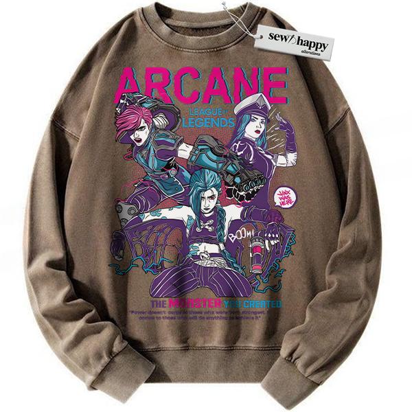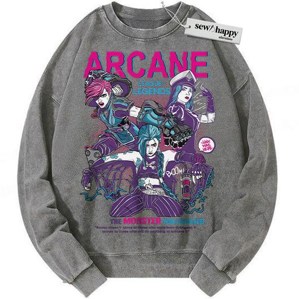 Wash Sweatshirt Arcane Sweatshirt, League of Legends Sweatshirt, Animated Sweatshirt, Vintage Sweatshirt