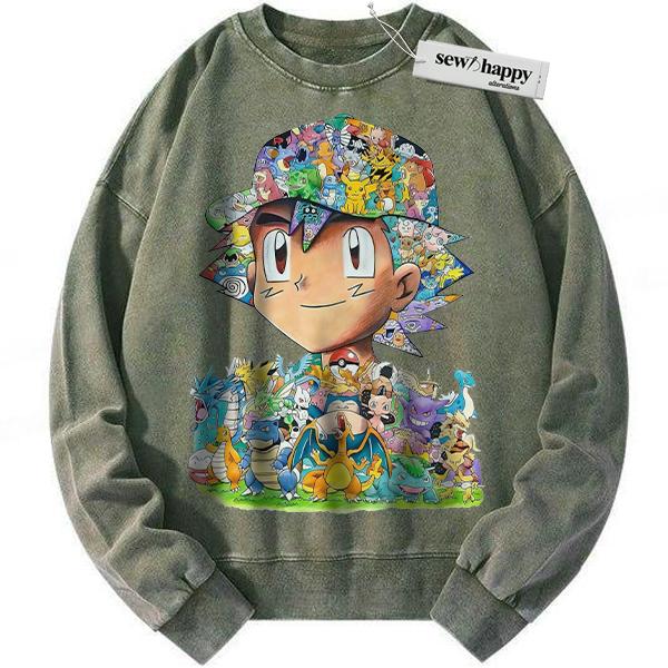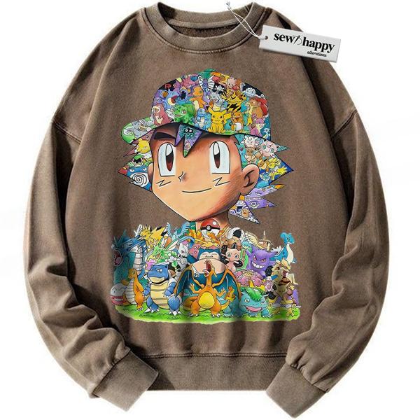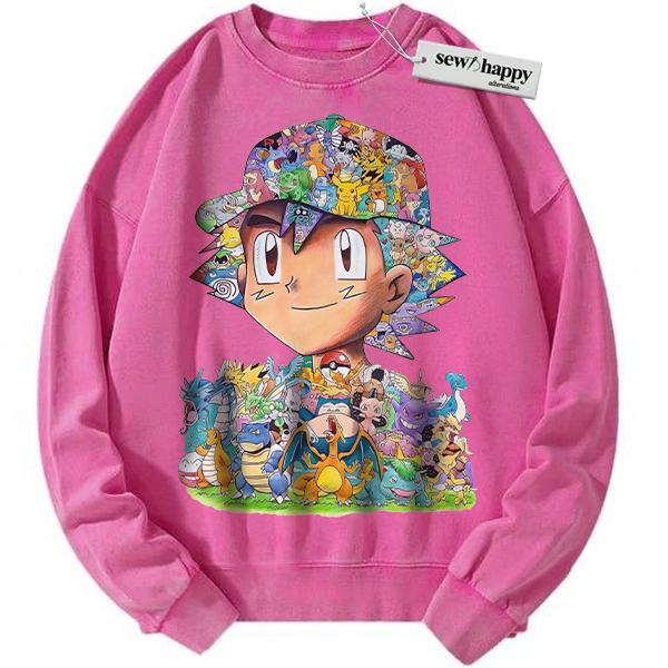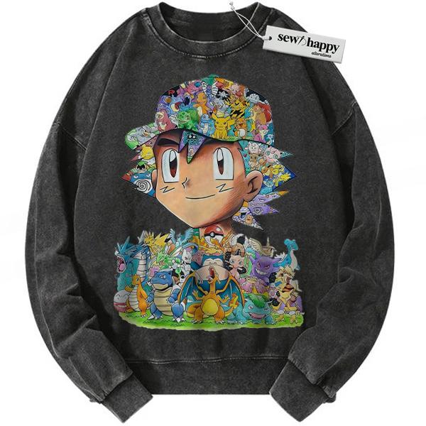 Wash Sweatshirt Ash Ketchum Sweatshirt, Pokemon Sweatshirt, PKM Sweatshirt, Anime Sweatshirt, Vintage Sweatshirt