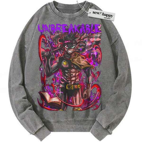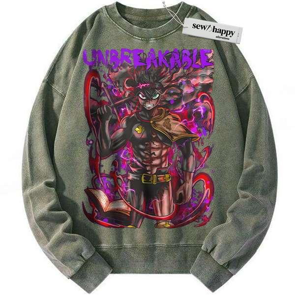 Wash Sweatshirt Asta Sweatshirt, Black Clover Sweatshirt, Anime Sweatshirt, Vintage Sweatshirt