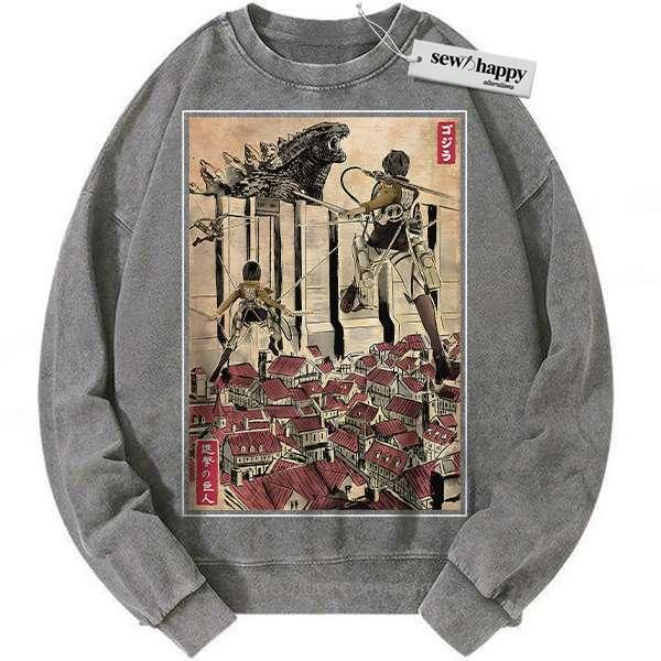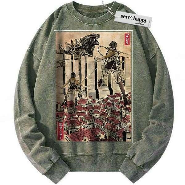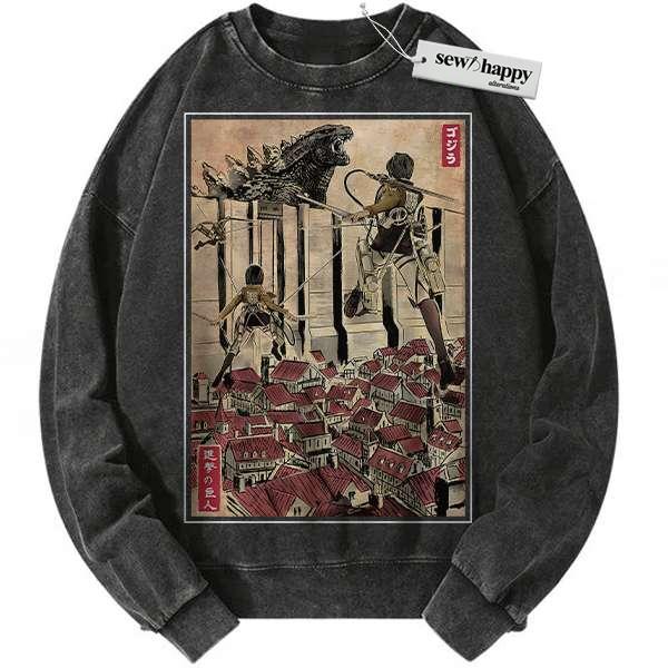 Wash Sweatshirt Attack on Titan sweatshirt, AOT sweatshirt, Vintage Sweater