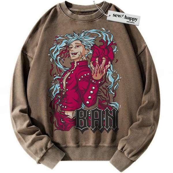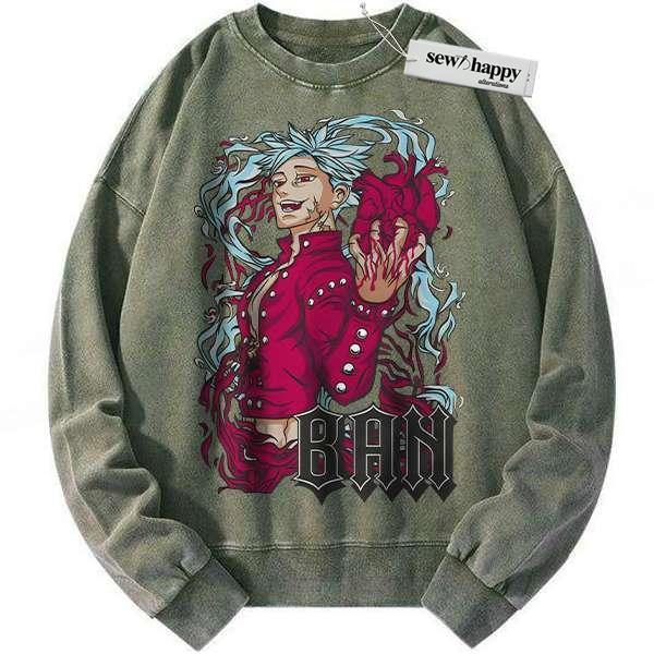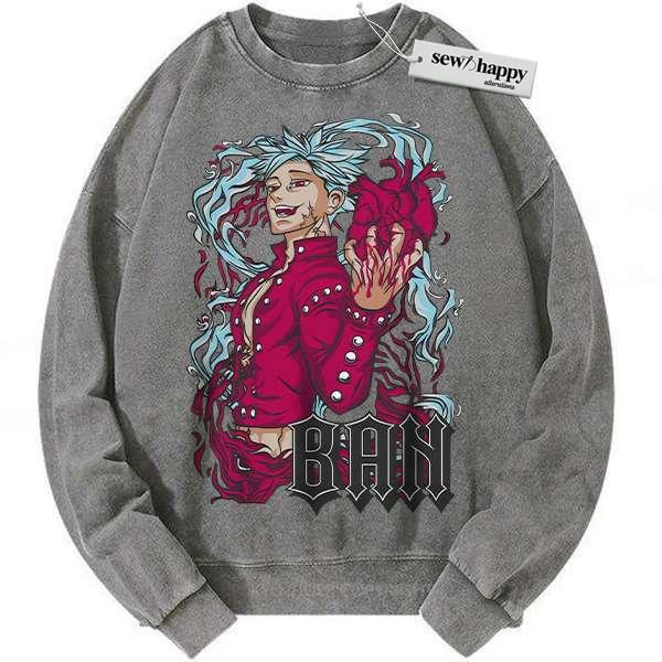 Wash Sweatshirt Ban Sweatshirt, The Seven Deadly Sins Sweatshirt, Anime Sweatshirt, Vintage Sweatshirt
