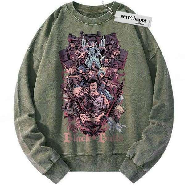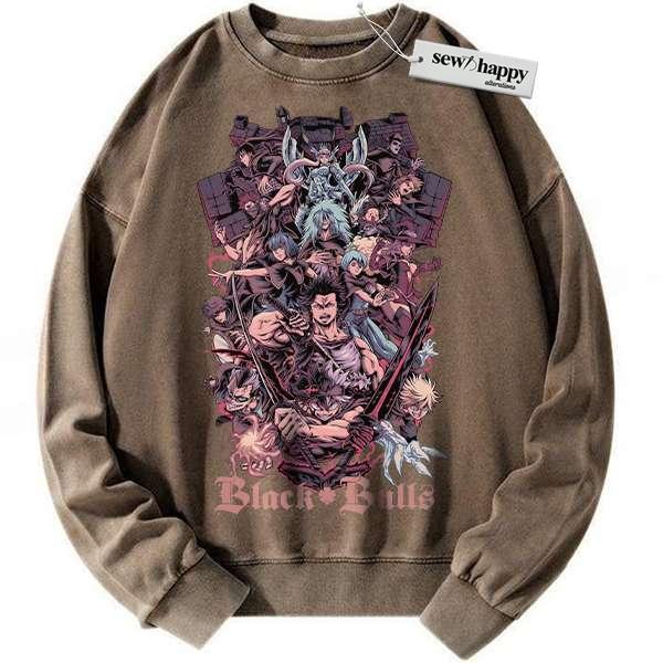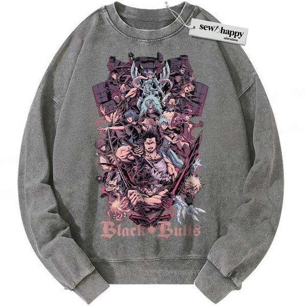 Wash Sweatshirt Black Bull – Black Clover Sweatshirt, Anime Sweatshirt, Vintage Sweatshirt