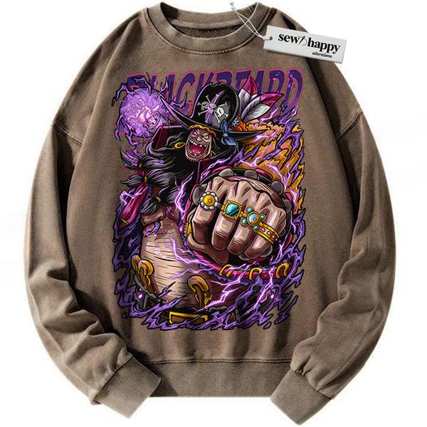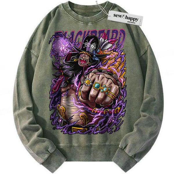 Wash Sweatshirt Blackbeard Sweatshirt, Marshall D Teach Sweatshirt, One Piece Sweatshirt, Anime Sweatshirt, Vintage Sweatshirt