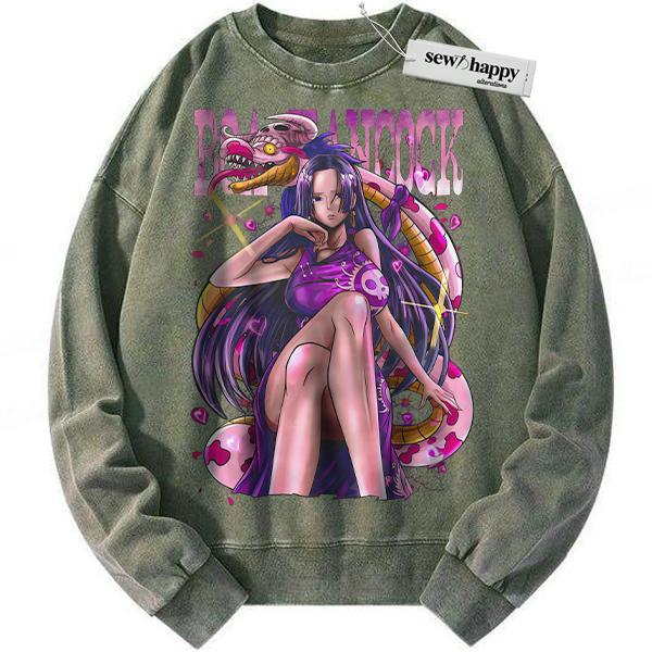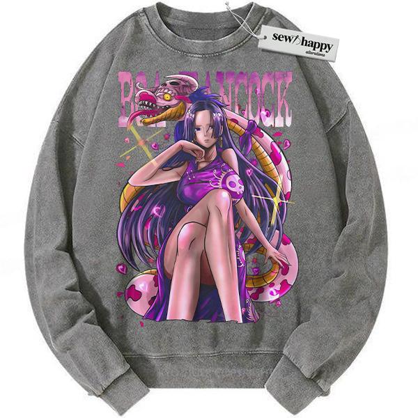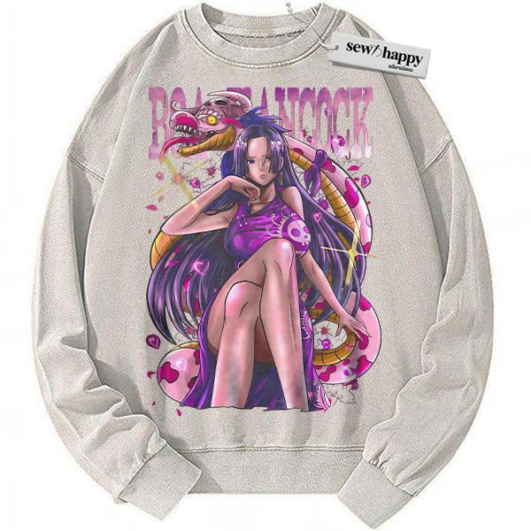 Wash Sweatshirt Boa Hancock Sweatshirt, One Piece Sweatshirt, Anime Sweatshirt, Vintage Sweatshirt