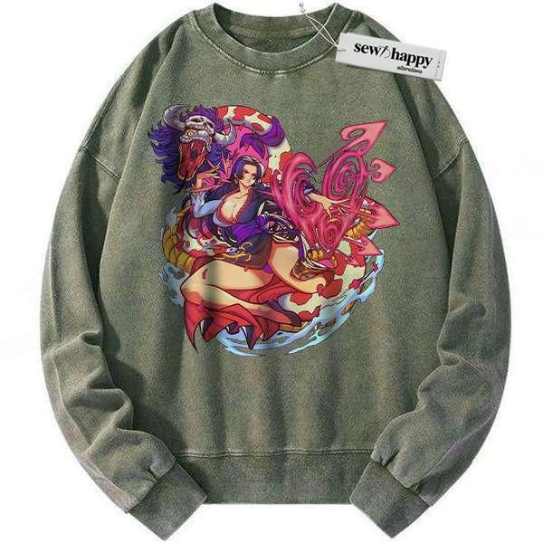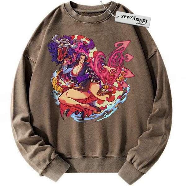 Wash Sweatshirt Boa Hancock Sweatshirt, One Piece Sweatshirt, Anime Sweatshirt, Vintage Sweatshirt