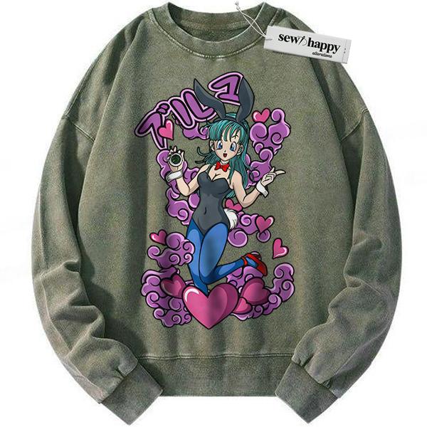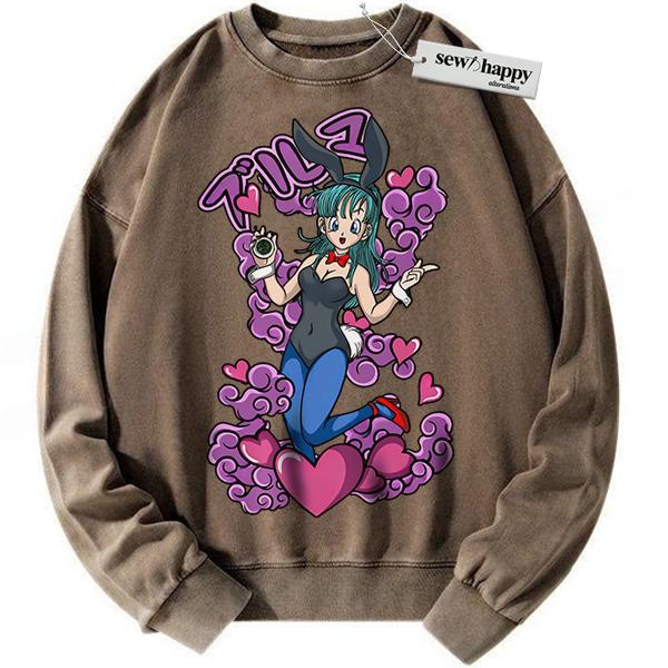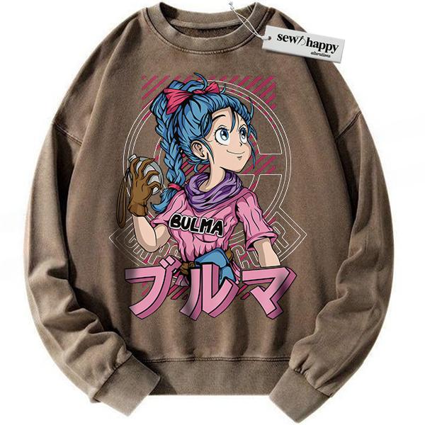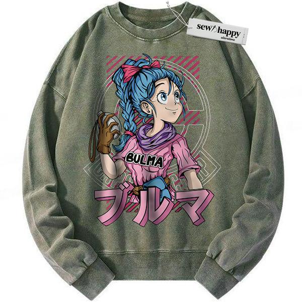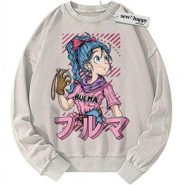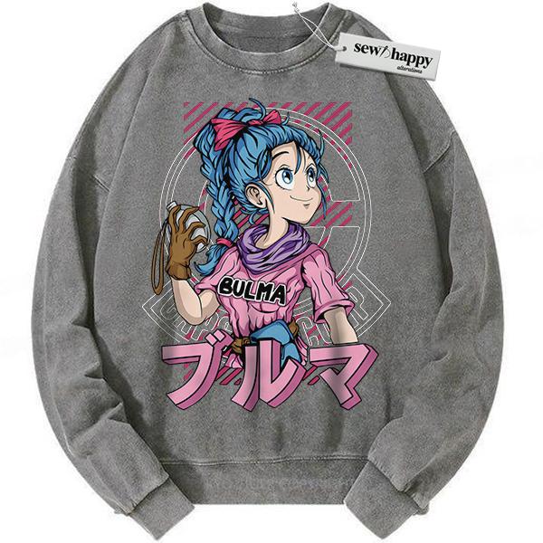 Wash Sweatshirt Bulma Sweatshirt, Dragon Ball Sweatshirt, DBZ Sweatshirt, Anime Sweatshirt, Vintage Sweater