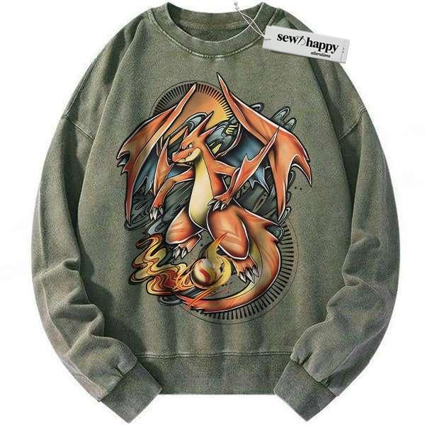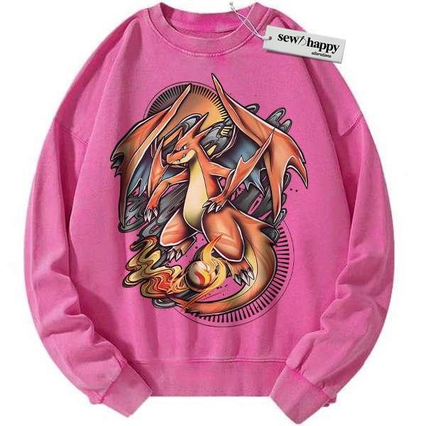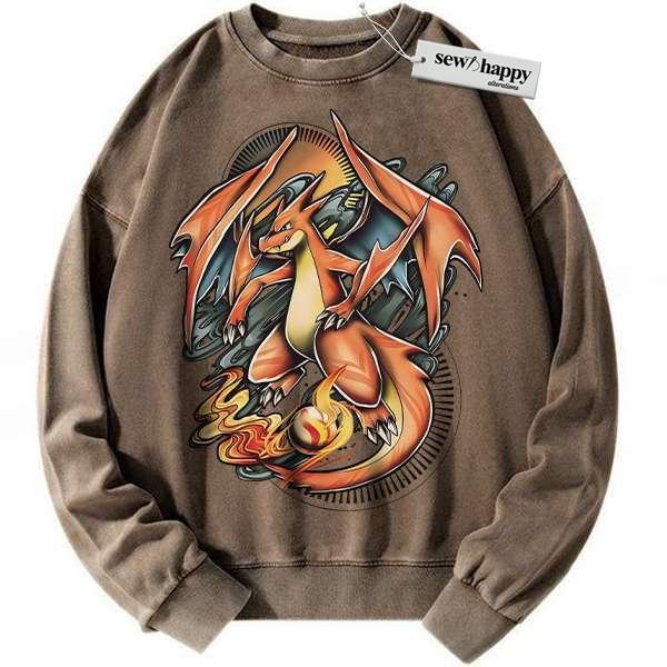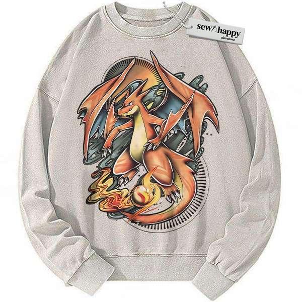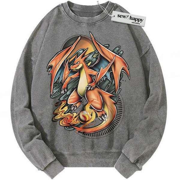 Wash Sweatshirt Charizard Sweatshirt, Pokemon Sweatshirt, Anime Sweatshirt, Vintage Sweatshirt