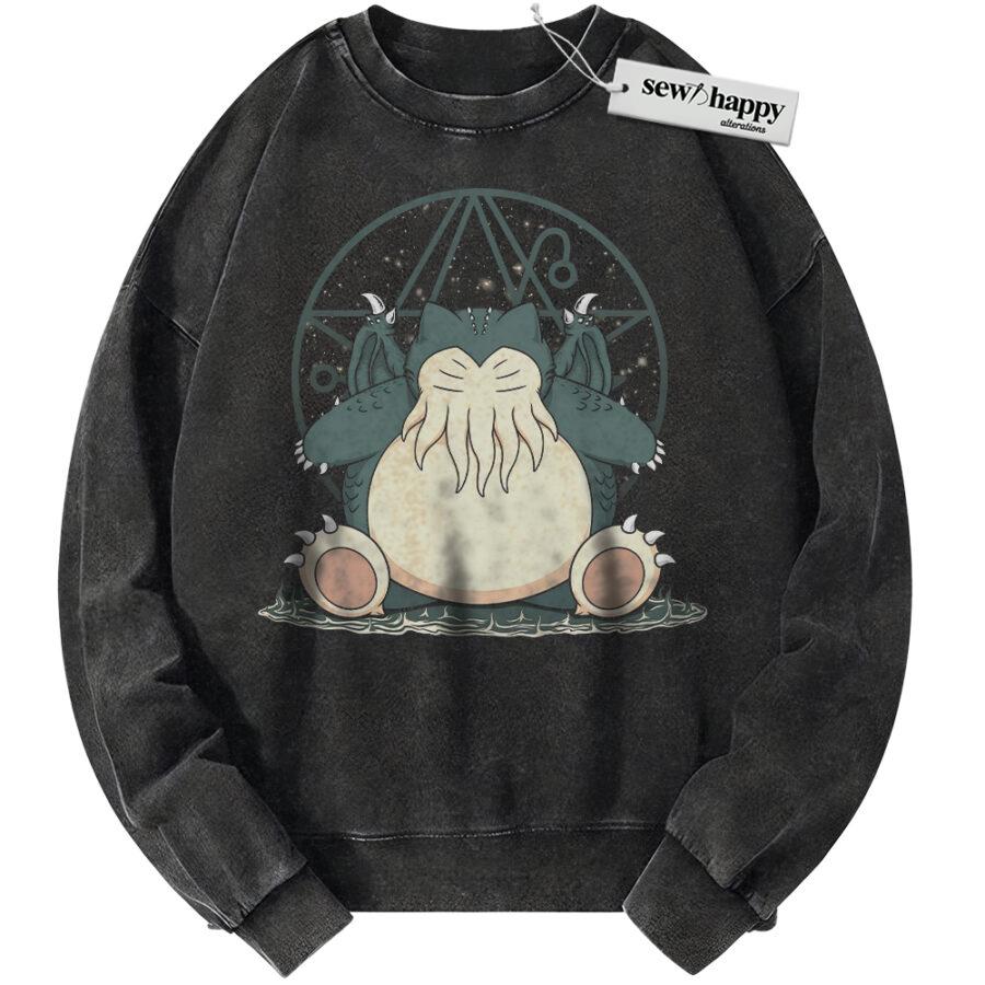 Wash Sweatshirt Cthulhu x Snorlax Sweatshirt, Pokemon Sweatshirt, PKM Sweatshirt, Anime Sweatshirt, Vintage Sweater