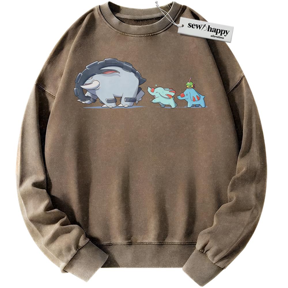 Wash Sweatshirt Donphan and Phanpy Sweatshirt, Pokemon Sweatshirt, PKM Sweatshirt, Anime Sweatshirt, Vintage Sweater