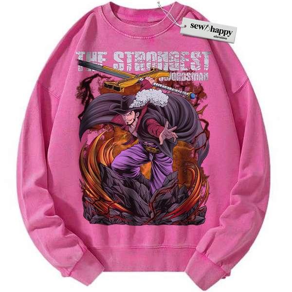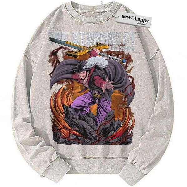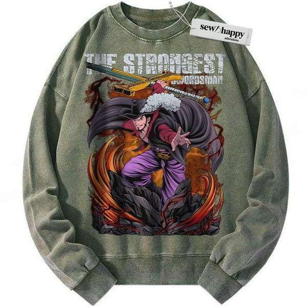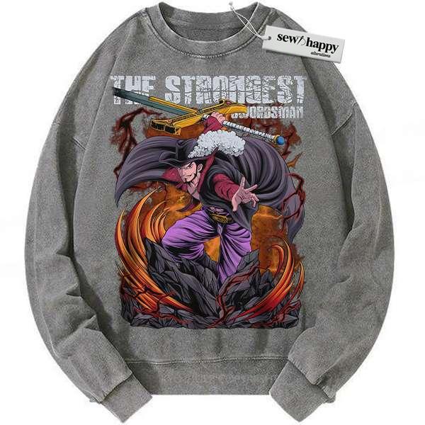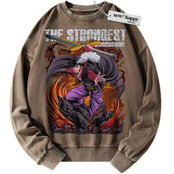 Wash Sweatshirt Dracule Mihawk Sweatshirt, One Piece Sweatshirt, Anime Sweatshirt, Vintage Sweatshirt