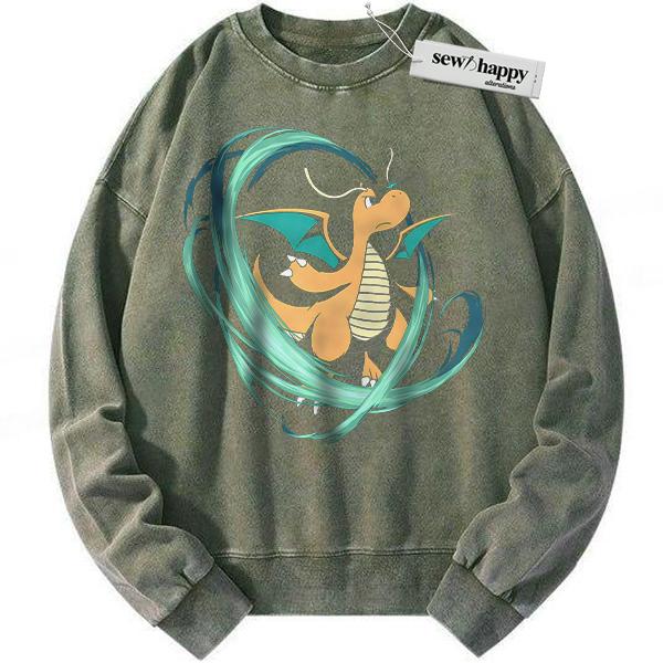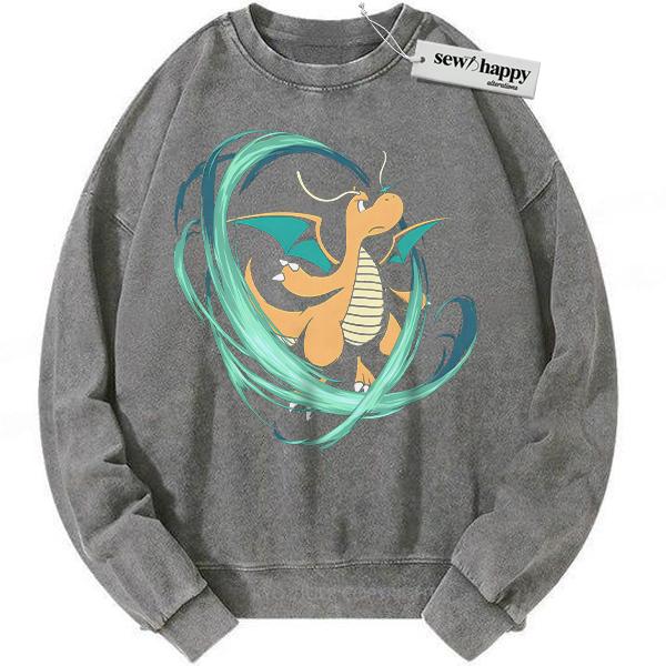 Wash Sweatshirt Dragonite Sweatshirt, Pokemon Sweatshirt, PKM Sweatshirt, Anime Sweatshirt, Vintage Sweatshirt