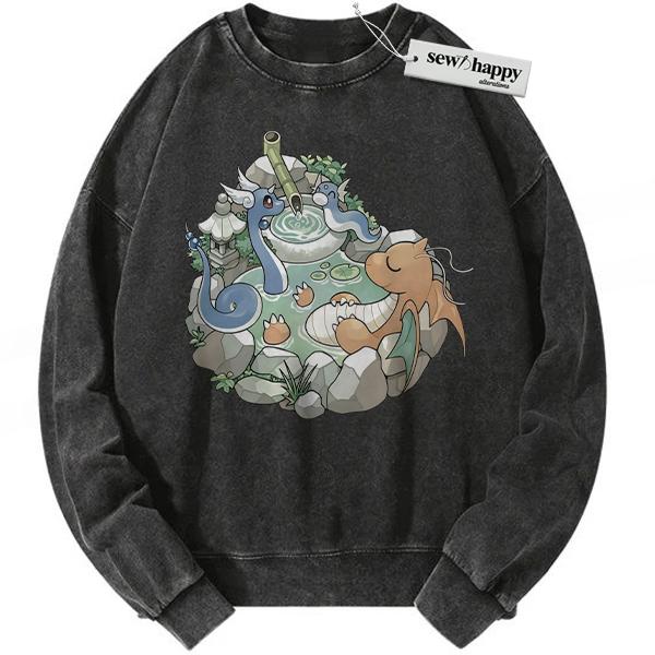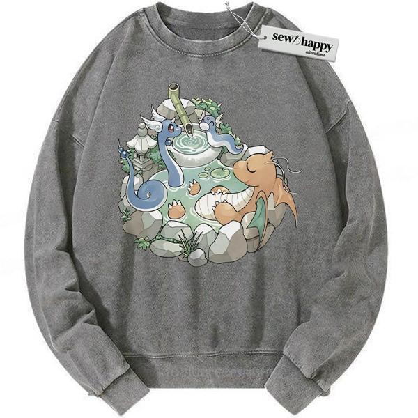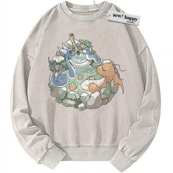Wash Sweatshirt Dratini Sweatshirt, Dragonair Sweatshirt, Dragonite Sweatshirt, Pokemon Sweatshirt, Anime Sweatshirt, Vintage Sweater