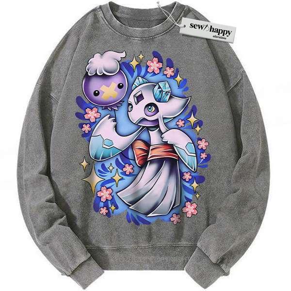 Wash Sweatshirt Drifloon and Froslass Sweatshirt, Pokemon Sweatshirt, Anime Sweatshirt, Vintage Sweatshirt