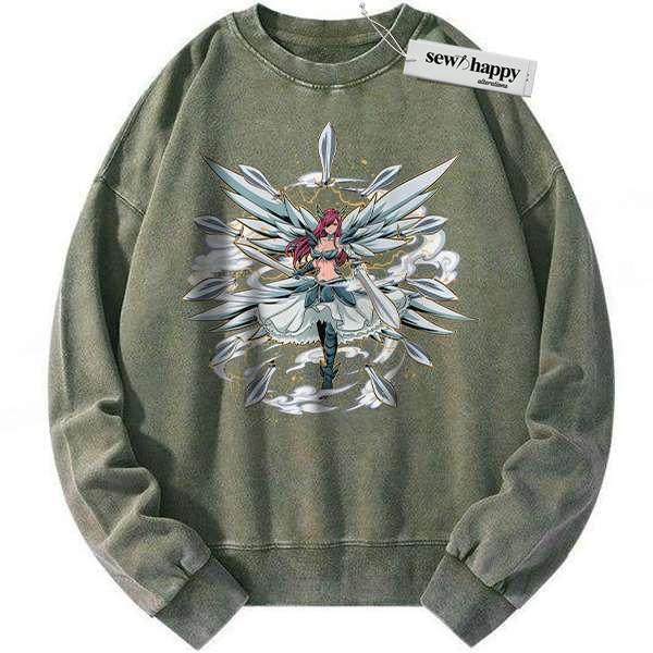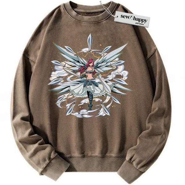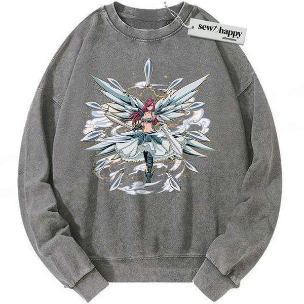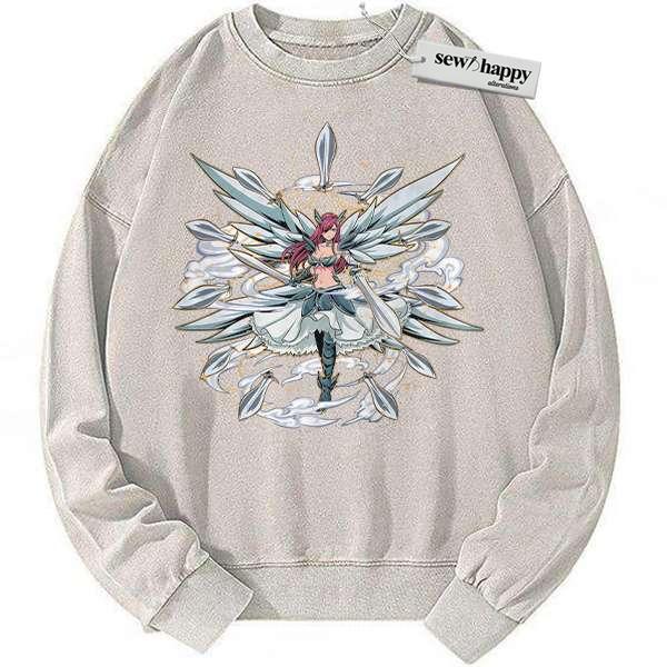 Wash Sweatshirt Erza Scarlet Sweatshirt, Fairy Tail Sweatshirt, Anime Sweatshirt, Vintage Sweatshirt