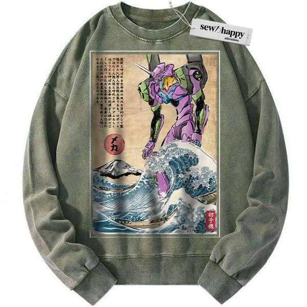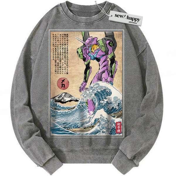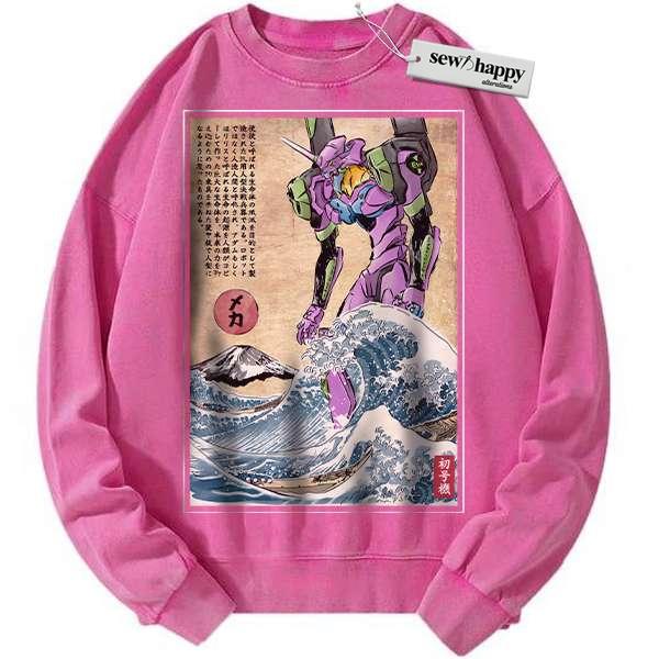 Wash Sweatshirt EVA-02 Sweatshirt, Neon Genesis Evangelion Sweatshirt, Anime Sweatshirt, Vintage Sweatshirt