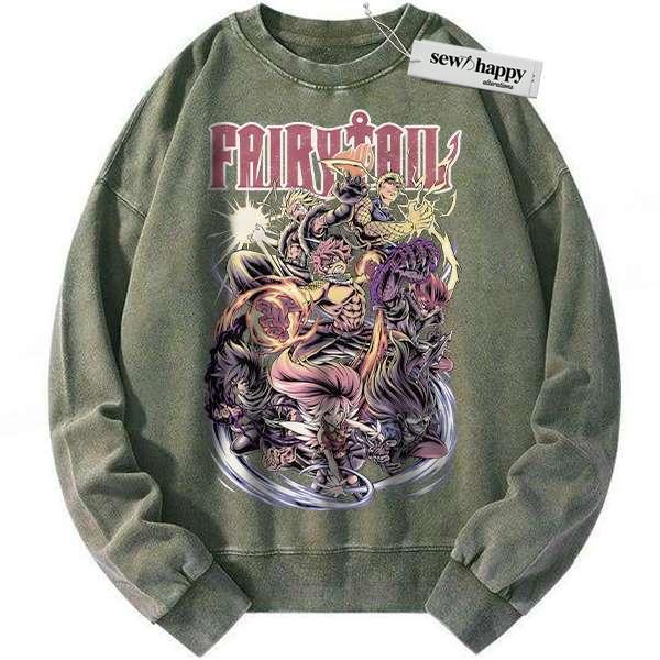 Wash Sweatshirt Fairy Tail Sweatshirt, Anime Sweatshirt, Vintage Sweater