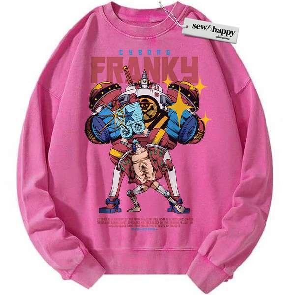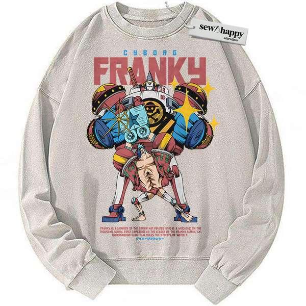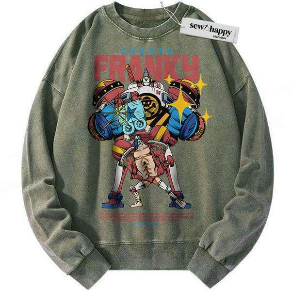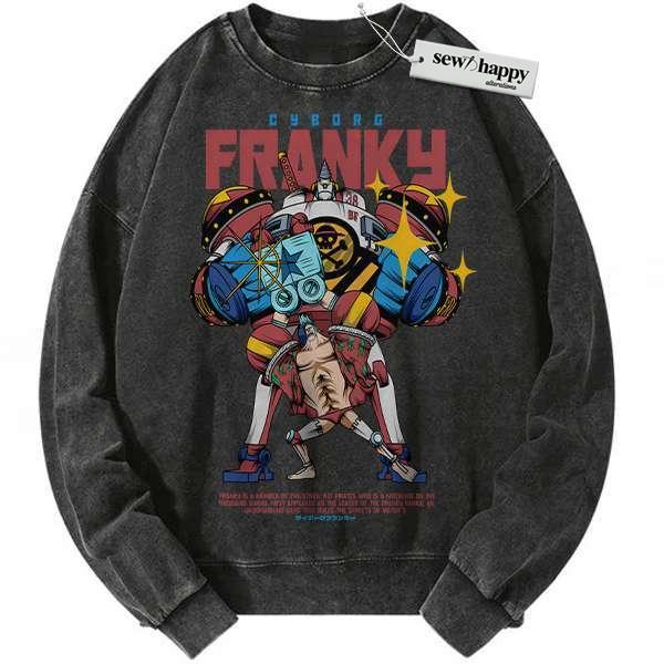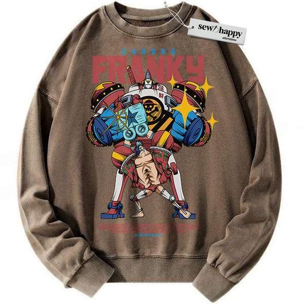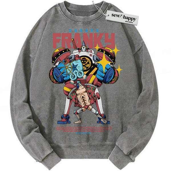 Wash Sweatshirt Franky Sweatshirt, One Piece Sweatshirt, Anime Sweatshirt, Vintage Sweatshirt