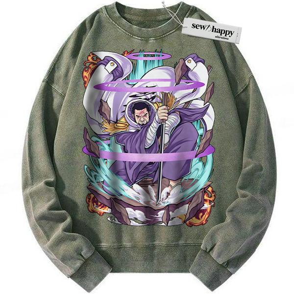 Wash Sweatshirt Fujitora Sweatshirt, Issho Sweatshirt, One Piece Sweatshirt, Anime Sweatshirt, Vintage Sweatshirt