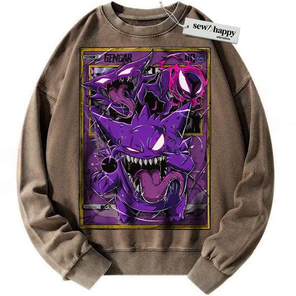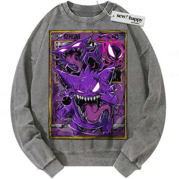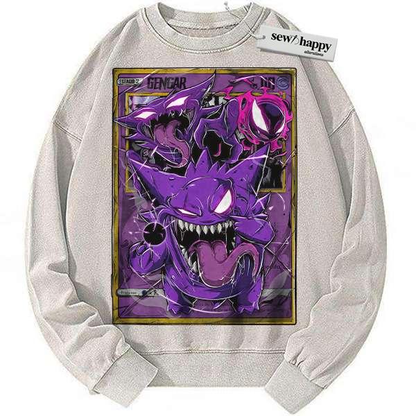 Wash Sweatshirt Gengar Sweatshirt, Pokemon Sweatshirt, Anime Sweatshirt, Vintage Sweater