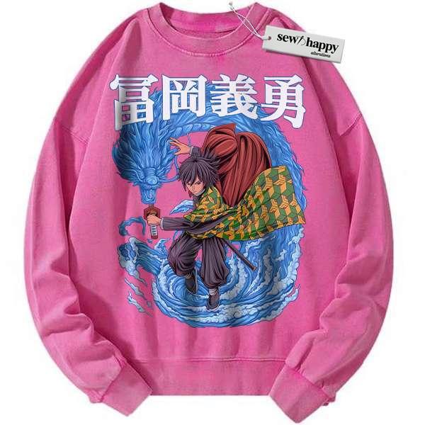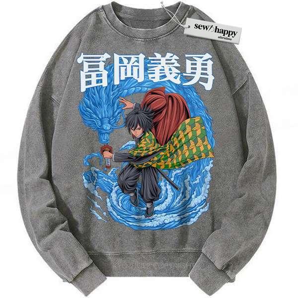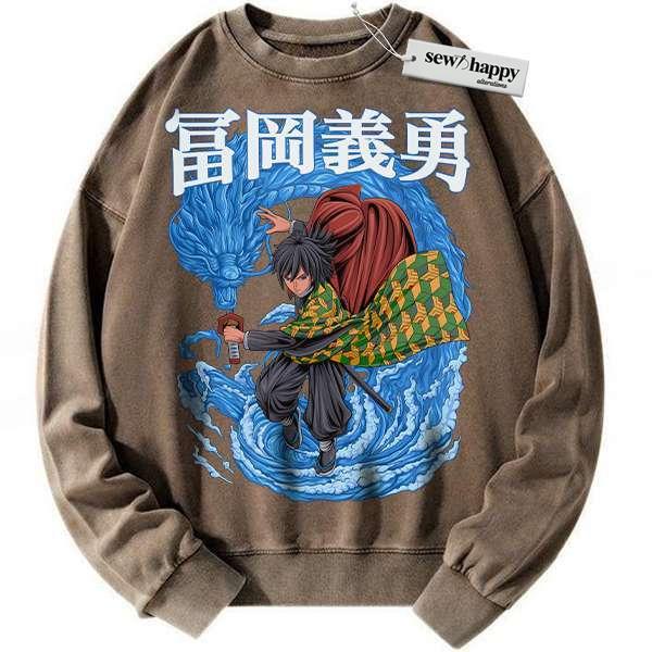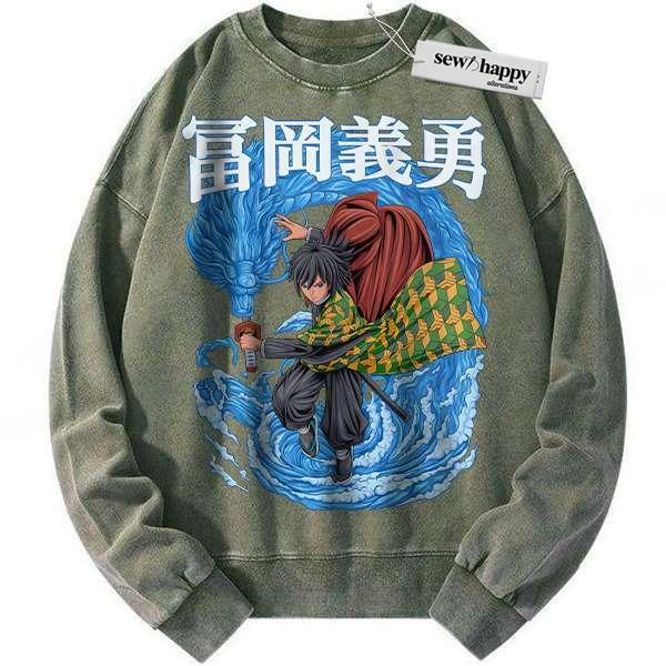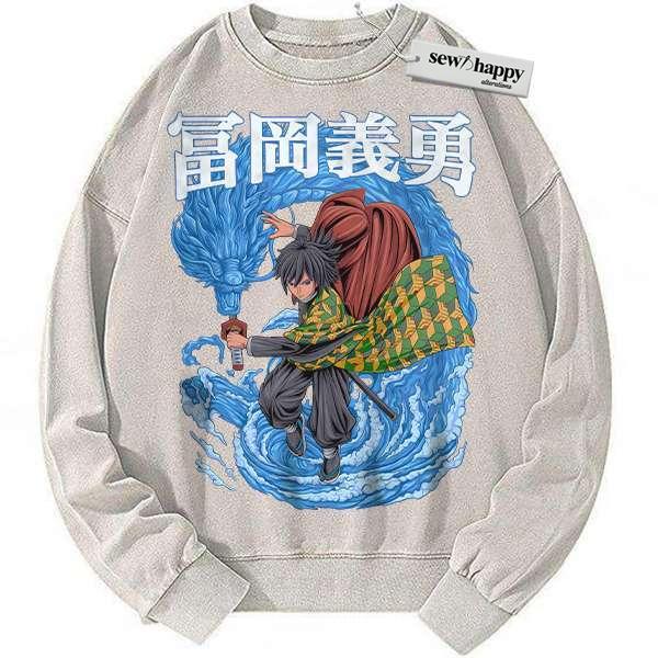 Wash Sweatshirt Giyu Tomioka Sweatshirt, Demon Slayer Sweatshirt, Anime Sweatshirt, Vintage Sweater