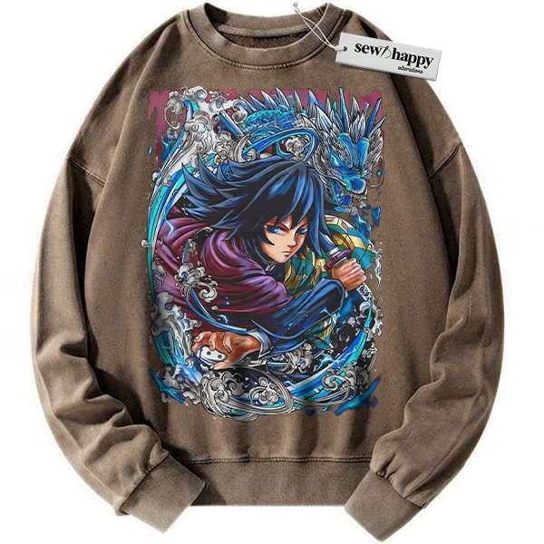 Wash Sweatshirt Giyu Tomioka Sweatshirt, Demon Slayer Sweatshirt, Anime Sweatshirt, Vintage Sweatshirt