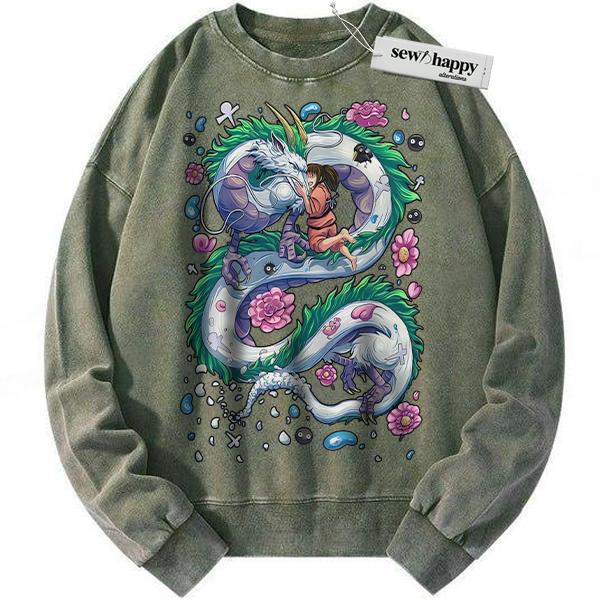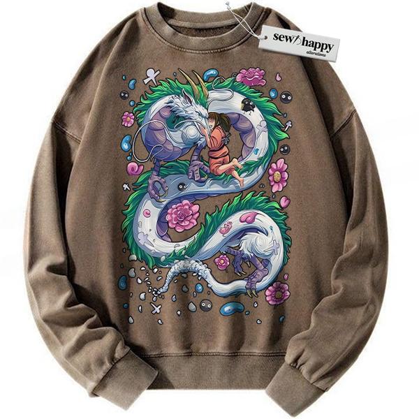 Wash Sweatshirt Haku vs Chihiro Sweatshirt, Spirited Away Sweatshirt, Studio Ghibli Sweatshirt, Anime Sweatshirt, Vintage Sweatshirt