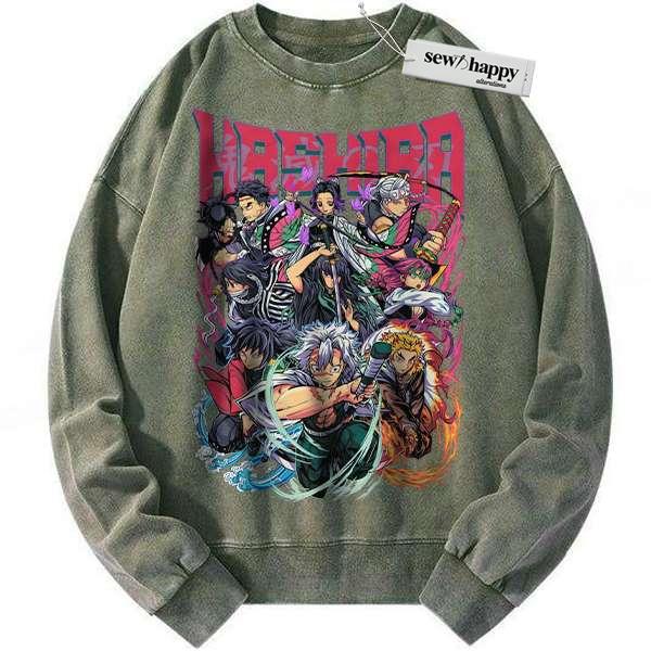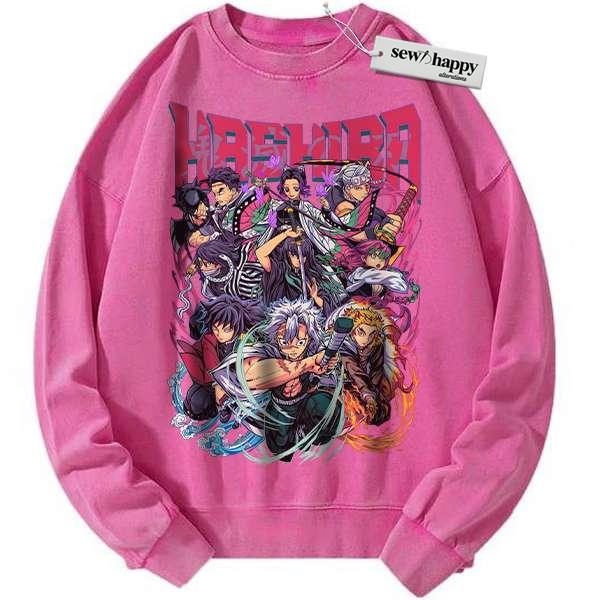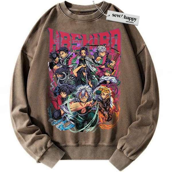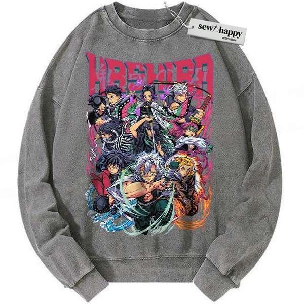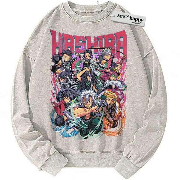 Wash Sweatshirt Hashira Sweatshirt, Demon Slayer Sweatshirt, Anime Sweatshirt, Vintage Sweatshirt