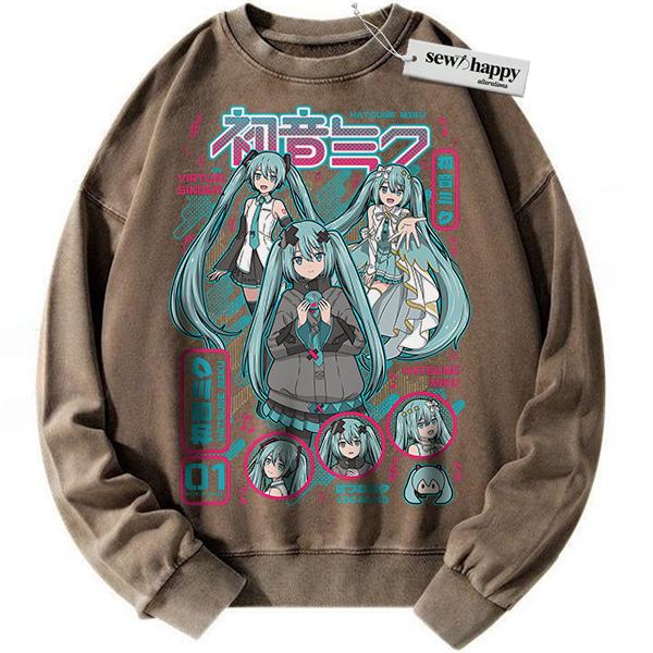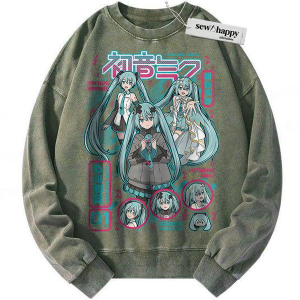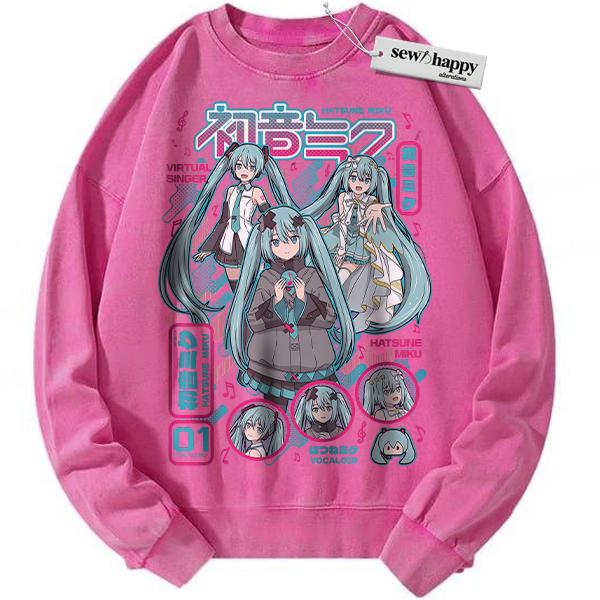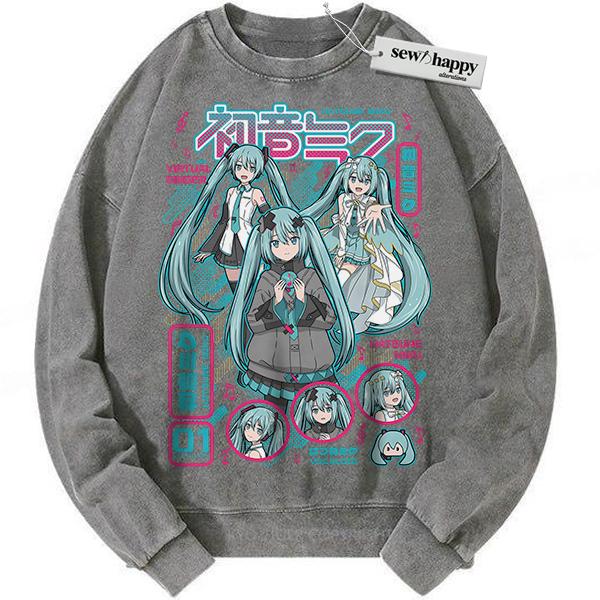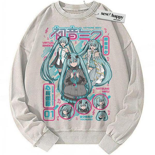 Wash Sweatshirt Hatsune Miku Sweatshirt, Anime Sweatshirt, Vintage Sweater