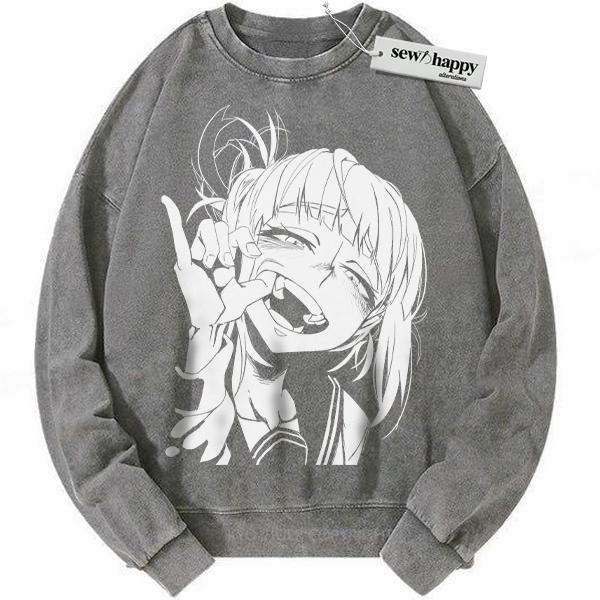 Wash Sweatshirt Himiko Toga Sweatshirt, MHA Sweatshirt, Anime Sweatshirt, Vintage Sweatshirt